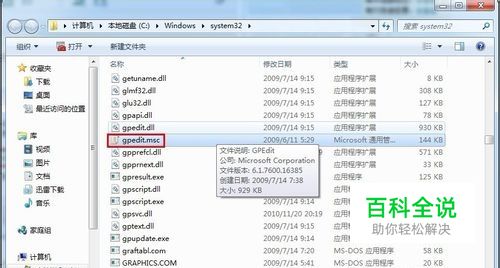 在这里面看看有没有“gpedit.msc”文件,如果双击打开,没有反应说明这个文件已经损坏,需要到正常的计算机上拷贝过来