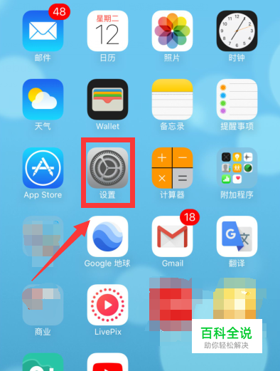 首先回到手机主界面,选择设置进入,如下图所示