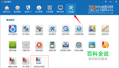 正如弹窗中所提示的那样,安装失败的原因是由于系统中缺少.NET Frmaework 4.5组件导致的。使用驱动精灵“百宝箱”中的“系统组件修复”工具可一键修复,如下图: