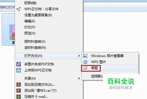 第一步:选中要修改尺寸的图片,单击鼠标右键打开方式选择“画图”。