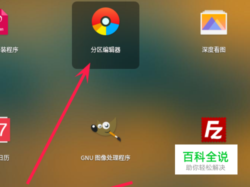 点击任务栏的启动器,找到分区编辑器。