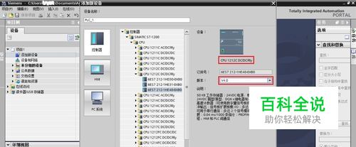 打开TIA Portal编程软件,新建一个项目,添加新设备,注意设备型号和版本必须选择正确。