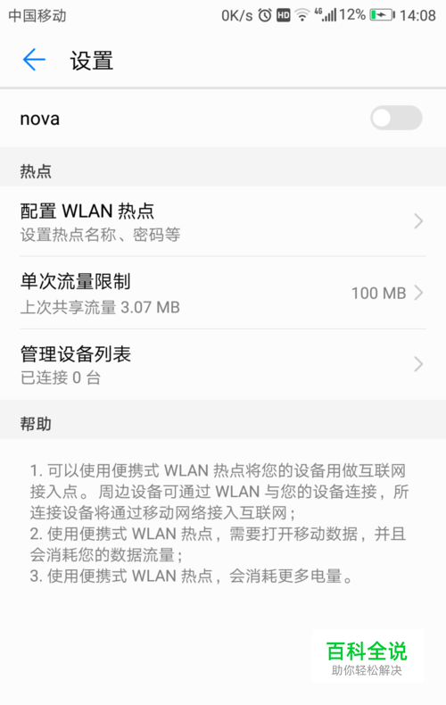 大家也可以设置单次的流量限制。不然要是别人用热点下载视频那些是很消耗流量的。所以大家可以根据自己的使用习惯,设置一个单词限制,超过这个限制,热点就会自动关闭。