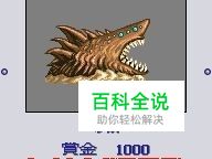 1、NO.1砂鲛。砂鲛是游戏最初的BOSS,悬赏金1000G,它的藏身地是马多镇和厄尔尼诺镇之间的沙漠中,一般在沙漠中可以遇到,威胁程度一般,使用战车就可以轻松打掉。