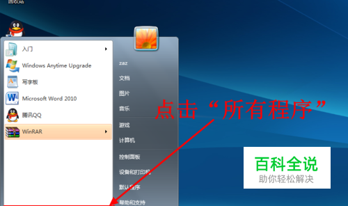 点击桌面左下角的开始,然后 打开所有程序列表。