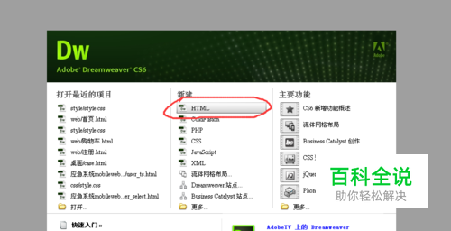 第一步,打开软件Adobe Dreamweave CS6,创建一个新的HTML,如图,