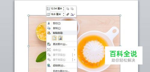 在PPT中插入一张图片,并调整到合适的大小,然后选中图片点击鼠标右键,在右键菜单中选择大小和位置。