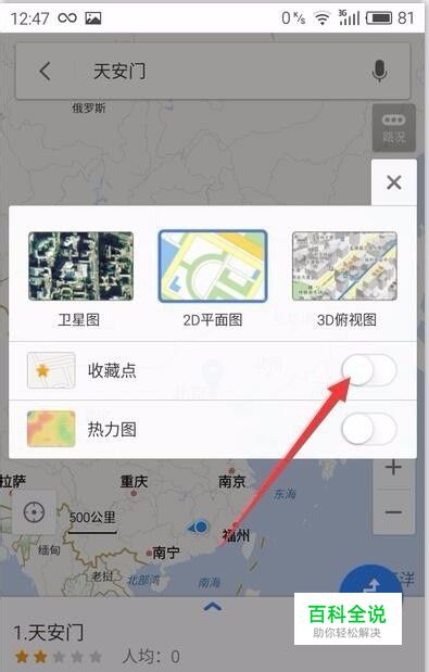 如图,地图上收藏的点就出现了五角星标志(下面两张图可以进行对比),这样收藏点位置就一目了然了,这个功能是不是很赞呐