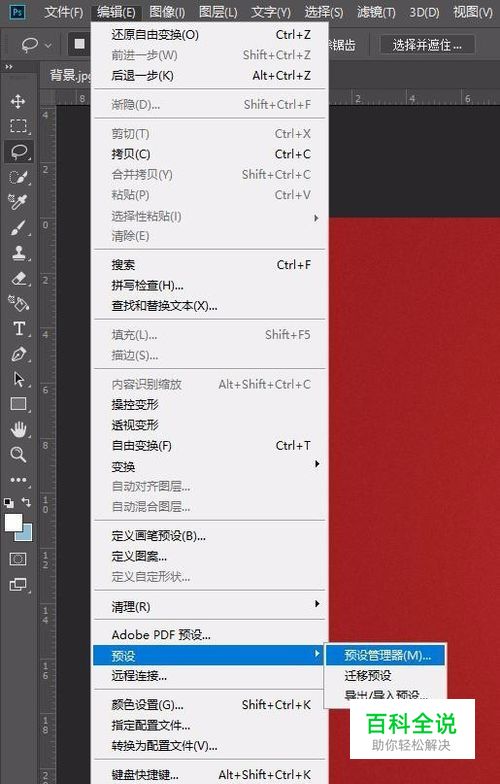 A:编辑—预设—预设管理器