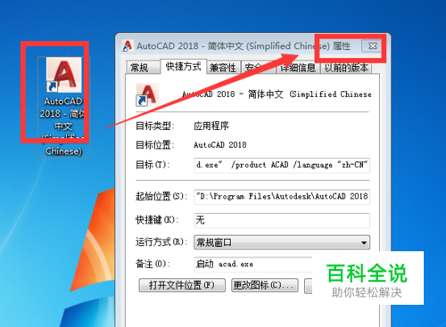 将国标字体设置为默认字体,右键CAD图标,选择属性,进入属性界面