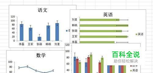 接下来我们绘制条形图来表示学生的英语成绩,完成后我们在误差线的下拉菜单中选择“标准偏差误差线”,点击后观看条形图,在图形右侧出现一个误差线系列,该误差线表达的是基于当前样本所估算出的总体数据的波动情况;