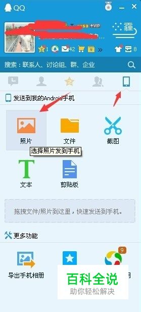 在这里点击照片,会打开qq助手,可以向手机发送照片。