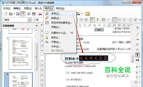 文档打开后会在左边看到文档页面的缩略图,在这里可以点击来切换需要编辑的页面。右边就是缩略图对应的页面,可以在这里对页面内容进行编辑。