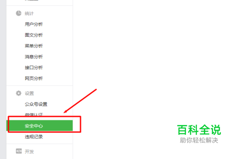 打开登录微信公众平台,在左侧找到【安全中心】,点击进入