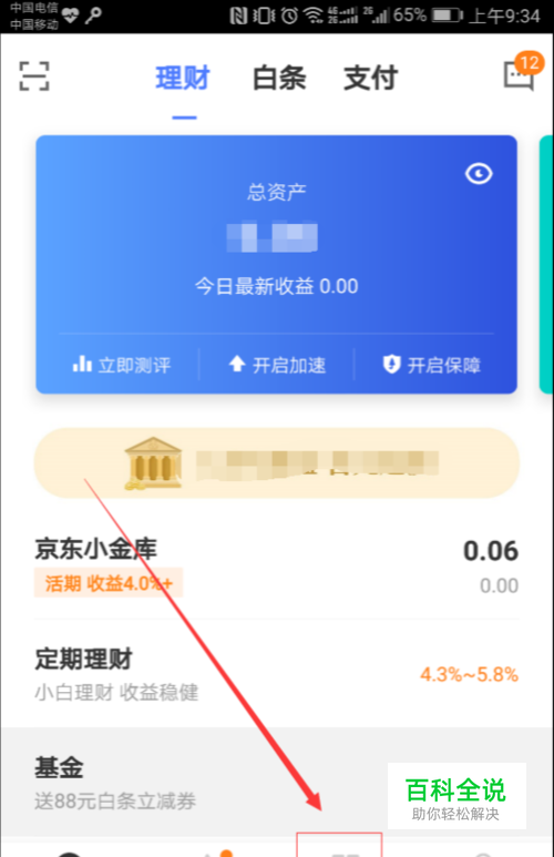 打开手机上安装的京东金融APP,输入登录密码或者指纹登入。