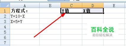 利用第一个公式Y=10-x,建立C2单元格的公式:=10-D2