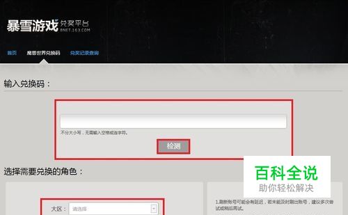 第二步:输入导师赠礼兑换码,点击检测后,选择大区,服务器,填写角色名