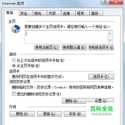 选择常规选项卡的主页菜单,缺省状态下使用的空白的页面。