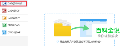 运行CAD转换器,打开页面,我们可以在页面的左侧看到很多文件类型转换的选项,在最上方的“CAD版本转换”,我们对它进行选择