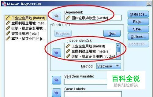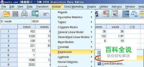 准备好你的数据,我们来检验残差的独立性,在菜单栏上执行:analyze--regression---linear,打开线性模型拟合对话框