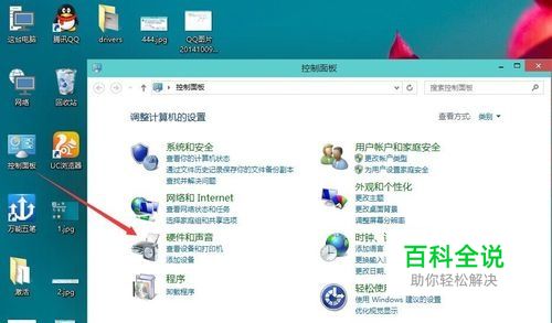 在桌面上点击控制面板然后再点击硬件和声音。