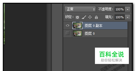 把一张可爱的狗狗图片拖进PS操作界面这里来;现在把小狗保留颜色,其它的地方都修改为黑白。 复制一层,然后把原来的图层眼睛关闭。