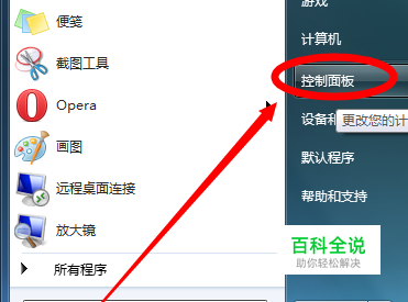 点击桌面左下角「windows图标」,再点击「控制面板」,如图:
