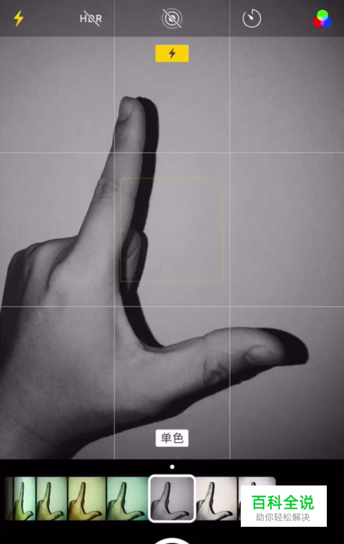 打开手机相机,打开闪光灯,点击右上角滤镜,选择单色或者黑白色