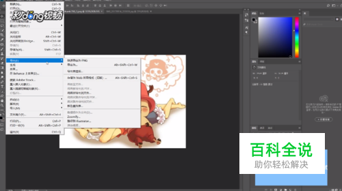 打开ps,图片处理完成后,在属性栏找到文件。