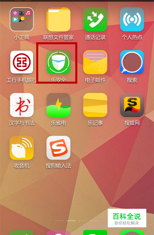 手机下载手机助手APP,这里以乐安全为例,如图所示。