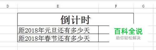 插入当前的时间,利用today函数就能实现了,然后在编辑栏输入好的公式后面用连接符&加上一个天字。同样,春节倒计时制作也一样,只是春节时间和元旦时间进行下修改就行了。