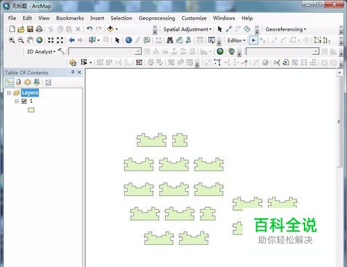 首先我在arcgis中添加一个面状图层,这个图层里面有几个建筑基底。我们就以这些数据作为示例。