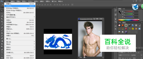 鼠标单击人物图片,然后按下“Ctrl+V”,将青龙粘贴到人物上。