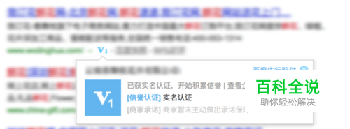 通过商标认证或者资信认证或者诚企认证 商标认证:商标认证是百度以企业的注册商标权证为权威认定依据,对注册商标及其对应网站进行的认证。 帮助企业树立品牌形象,打击品牌侵权。 资信认证:资信认证是百度基于第三方实地获取的企业经营资质及相关资产情况等信息,为企业提供前述客观实力信息的特别展现,帮助其更好地获得目标消费人群的关注及信任。 诚企认证:在百度商业生态系统中,百度基于一系列客观真实的商家资信认证、信用记录、承诺保障和口碑评论等数据,为优质企业提供多方位诚信信息汇聚展现和百度置顶力荐,有助于更好地获得目标消费人群的信任。