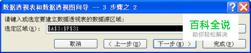 随即弹出【数据透视表和数据透视图向导–3步骤之2】对话框,此时Excel会自动识别数据源所在的单元格区域,并将该区域引用到【选定区域】文本框中。