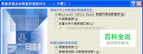 随即弹出【数据透视表和数据透视图向导–3步骤之1】对话框,从中可以选择数据源类型和报表类型,在此保持默认设置,单击【下一步】按钮。