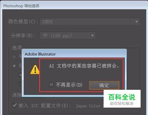 这时软件就不会再提示(AI文档中的某些容器已被拼合。)或者提示也可忽略;