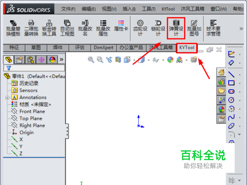 首先,打开solidworks设计软件,在KYTool工具栏上点击“弹簧设计”工具,如图所示