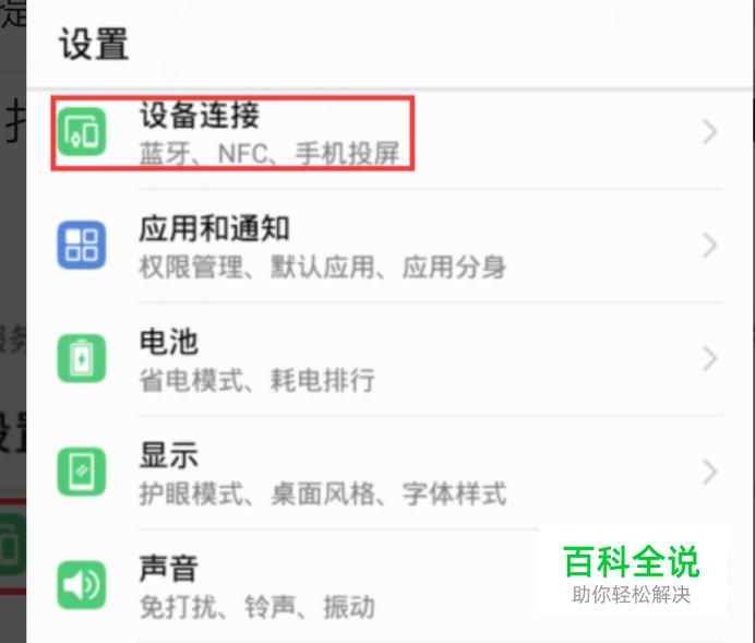 打开手机,找到设置图标,打开找到设备连接选项