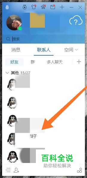 首先单击鼠标左键选中需要拉入黑名单的QQ号。