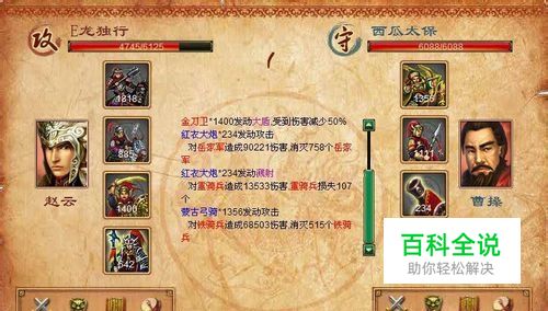 蒙古弓骑,战场搅局者 在《梦想帝王》里,蒙古弓骑并非是杀敌的主力军,但它的先手攻击却能让它在参战部队里占有一席之地,并成为战场的搅局者。来看看赵云大战曹操的战报,曹操拥有1356名蒙古弓骑,第一回合就发动必杀,歼灭赵云515名铁骑兵;第二回合因毫发未损,又歼灭赵云426名重骑兵;第三回合虽然不幸遇到相克的金刀兵,但依然歼灭218名,迫使赵云面对曹操的轮番攻击,全军覆没。这里可看出,虽然蒙古弓骑的数量并不多,但却消灭了对手足够多的兵力,成功搅局。