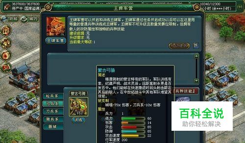 蒙古弓骑,先手玩秒杀 《梦想帝王》的蒙古弓骑是由高级兵种弓骑兵升级而来的,攻击属性和防御属性都有所提升,特有技能“骑射专精”,不仅能免疫“铁蹄”技能的影响,还能使第一回合的攻击伤害提升至标准的85%,而非一般情况下的50%!另外,还有“骚扰”技能,能在第一回合发动必杀的概率翻倍,这样一来,蒙古弓骑就能在战斗开始之际重创对手,从而大大降低在第二、第三回合受到的威胁。正因如此,蒙古弓骑也成为大家比较喜欢使用的兵种之一。