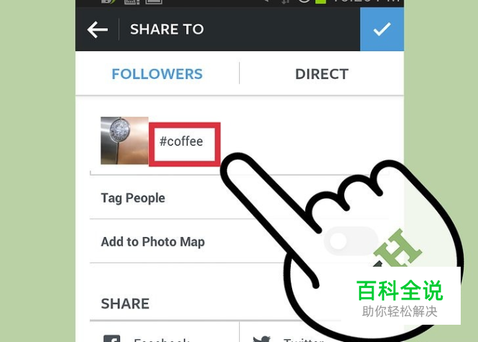 进入你图片的标题部分。直接在输入的每个词语前面加上# 。例如,如果您要标记单词“海滩”,你会输入“#海滩”