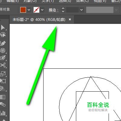 我们新建画板绘制出形状,当前模式是预览模式;我们把这种模式更改为轮廓模式。我们在软件界面上方的菜单栏中点“视图”;在弹出的菜单中,点击第一项“轮廓”;那么,当前模式就更改变“轮廓”模式了。