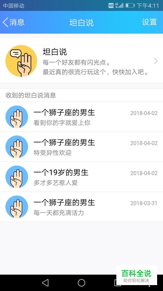 打开后,就可以看到别人给你发的所有坦白说消息,然后点击最上面的“坦白说”。