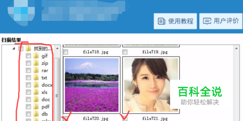 待软件扫描完成后可以看到软件界面上出现的数据了。然后勾选出要恢复的照片文件。