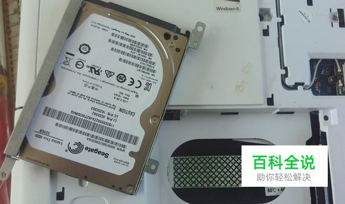 首先打开电脑后盖,找到硬盘,用螺丝刀拆下。