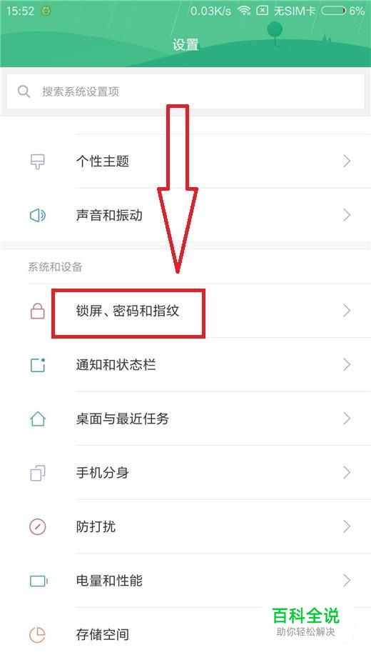 首先打开手机上的“设置”按钮,选择“锁屏、密码和指纹”选项。