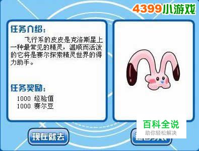 对话过后捕捉一只野生的皮皮就完成任务了,奖励1000经验和1000赛尔豆。