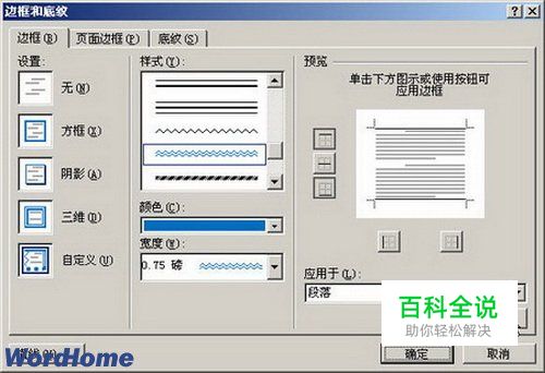 第4步,返回“边框和底纹”对话框,单击“确定”按钮。返回Word2007文档窗口,选中需要插入边框的段落,插入新设置的边框即可。